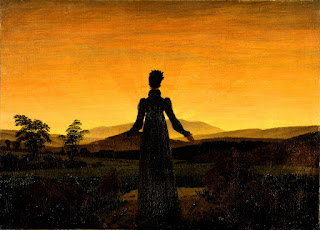 Se il Romanticismo ottocentesco ha rivelato il pessimismo cosmico della profondità del sentire interiore, Friederich vi apporta l'immaginario iconografico con le visioni simboliche di quel microcosmo umano che cerca di armonizzarsi malinconicamente con l'immensità del macrocosmo universale. Da un primo piano subito uno sfondo lontanissimo e straniante, difficile da afferrare, comprendere, in una sensazione d'infinito impalpabile e misterioso. Simbologie si incarnano sulla tela , avverando l'elevazione dell'uomo attraverso la meditazione sull'eterne domande dell'esistenza. La Natura si veste di segni da decifrare: le montagne sono fede, gli abeti speranza, l'alba vita eterna, la luna l'avvento illuminante, e il rosso l'amore, l'edera immortalità, il mare eternità, le barche il transito alla vita eterna, l'abete sempreverde il cristianesimo e la quercia contorta il contrapposto mondo pagano. In ogni quadro la natura ha in se il divino e la ricerca stupefatta/sgomenta dell'uomo, immerso nella solitudine della sua finitezza, sempre in cerca dell'unione con l'infinito naturale. La tensione di quello sguardo contemplativo verso spazi infiniti senza tempo che portano l'uomo in un luogo lontano dell'io. Friedrich scriveva che "il divino è ovunque, anche in un granello di sabbia; una volta l'ho raffigurato in un canneto". I suoi personaggi sempre colti , con idea molto innovativa, di spalle, alla stessa altezza del nostro sguardo coinvolgendoci in un'identificazione speculare, davanti allo spettacolo grandioso di un qualcosa di arcano, come quel viandante sul mare di nebbia , manifesto del suo tempo, colto in una solitudine eroica davanti ad un abisso senza tempo, anelando e temendo di sprofondare in quell'immensità, di perdersi in quella visione che contempla vita, morte, inizio, fine, rinascita. C'è un altrove, come un mare di ghiaccio artico, dove tutto si annulla in una eterna fissità, senza spazio e tempo, in cui la vita s'incaglia , ma è un attimo nell'esistere di quell'assoluto. Noi eterni viaggiatori in un crepuscolo, contempliamo l'attimo in cui tutto si trasforma intorno a noi, e il paesaggio si fa luogo dell'anima.